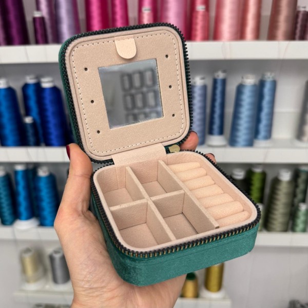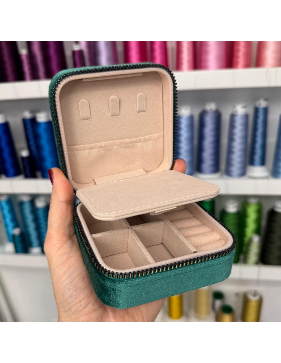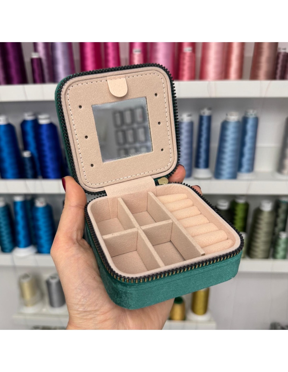 Cette boîte à bijoux carrée vous permet d'emporter vos bijoux bien protégés durant vos déplacements. Elle est disponible en 4 couleurs et peut-être personnalisée avec 2 initiales entrelacées ou simplement 1 initiale de couleur or.
