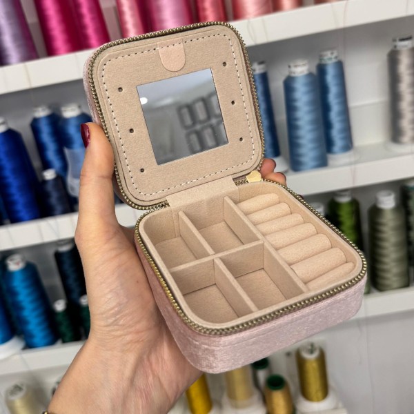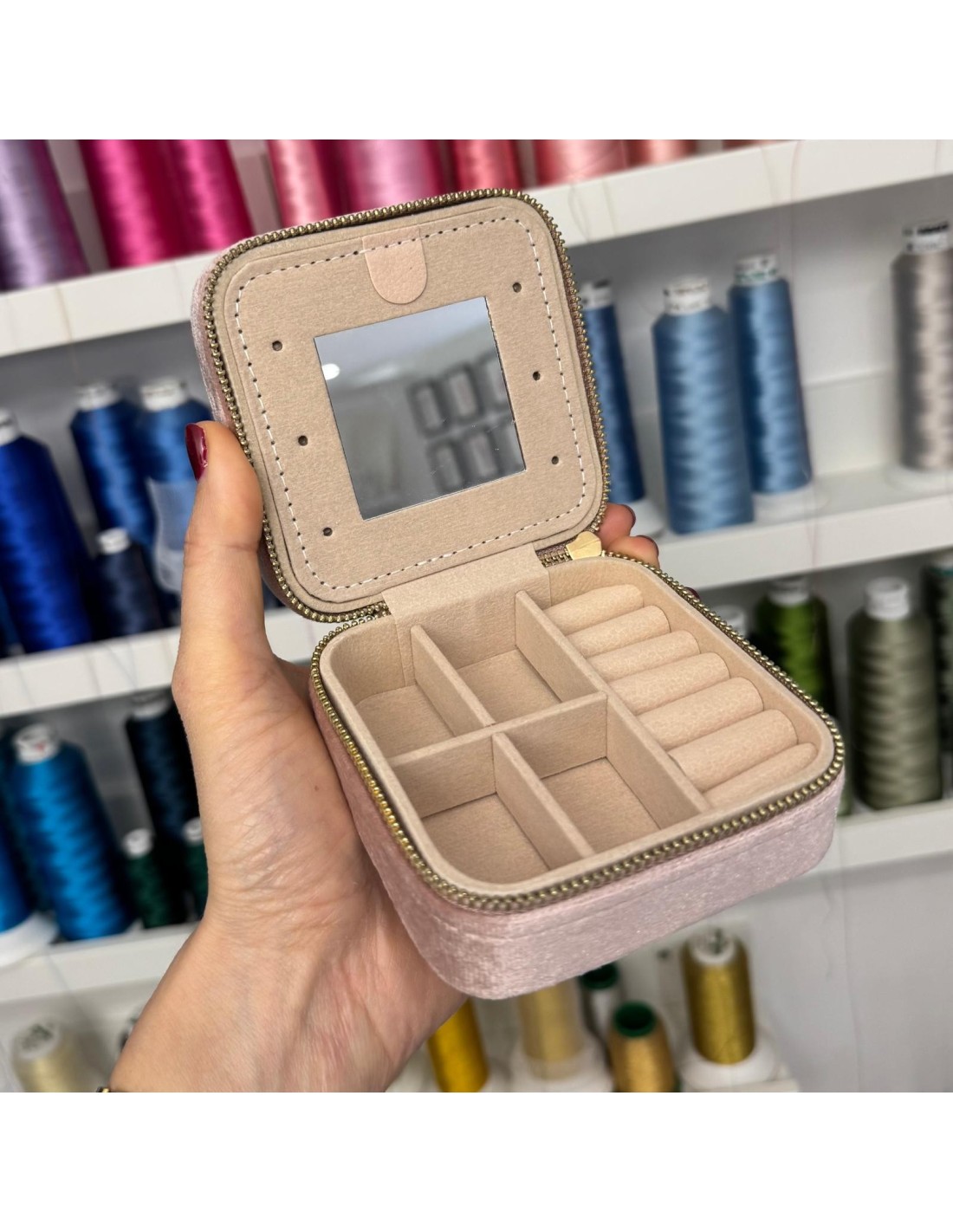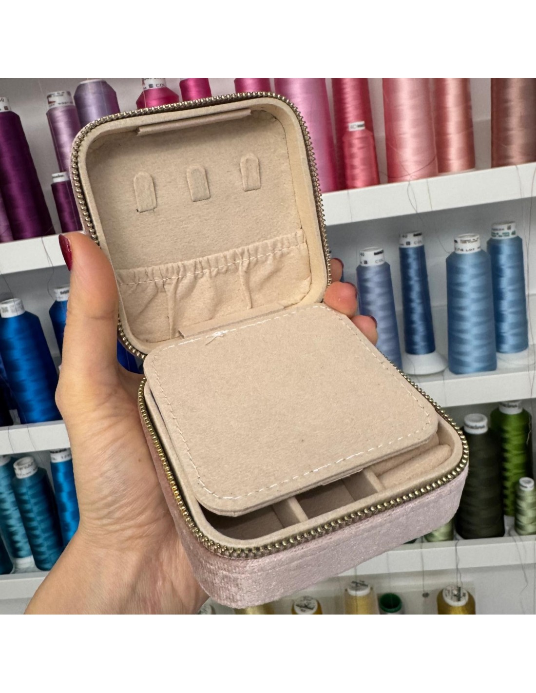 Cette boîte à bijoux carrée vous permet d'emporter vos bijoux bien protégés durant vos déplacements. Elle est disponible en 4 couleurs et peut-être personnalisée avec 2 initiales entrelacées ou simplement 1 initiale de couleur or.