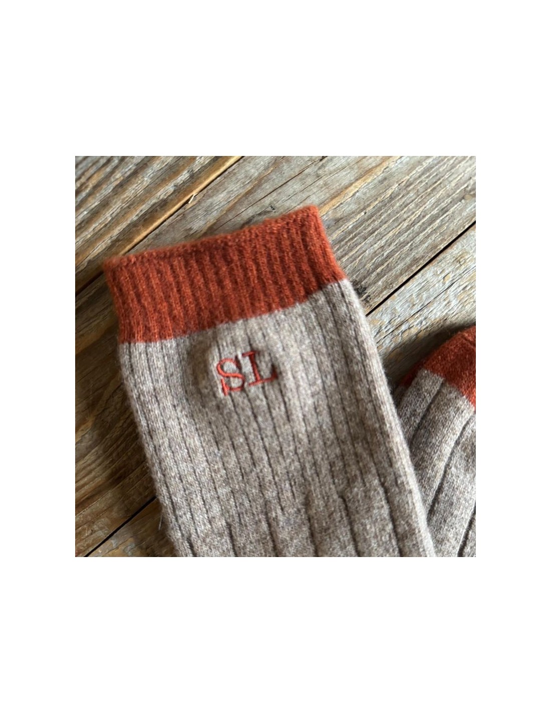 Chaussettes bi-colore en laine personnalisable avec initiales brodées